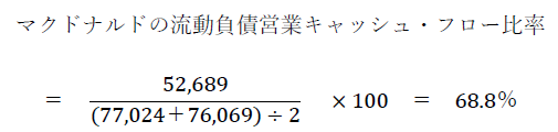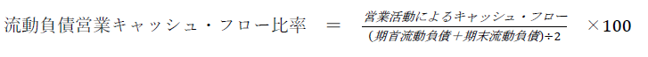 [5] この比率は、分母が流動負債であることから、流動比率や当座比率と似ています。いわば、フローの観点から短期の安全性を測定している指標とも言えます。