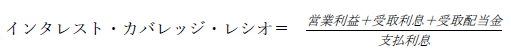 この比率は、損益計算書の営業利益と金融収益(受取利息+受取配当金)が支払利息(interest)をどの程度カバーできているかを表し、大きいほど安全性が高いことを意味します。