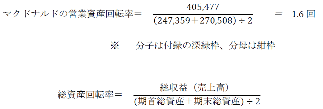 - マクドナルドの営業資産回転率
