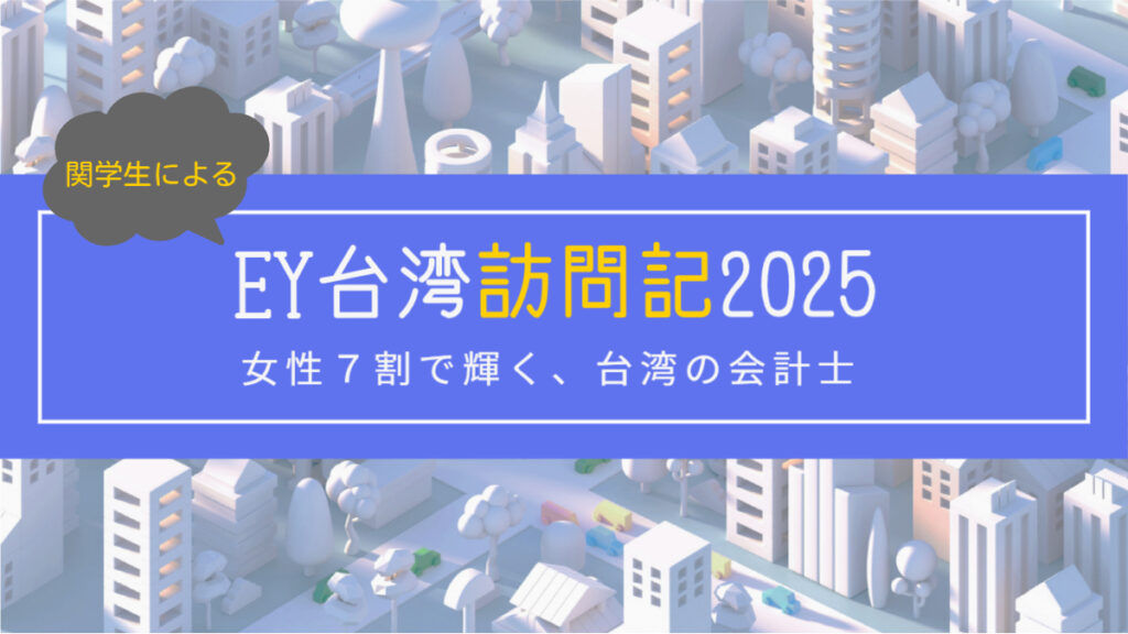 私たちは関西学院大学商学部の学生です。5日間の台湾での海外研修に参加し、複数のチームに分かれてEY台湾に所属する橋本先生(橋本純也パートナー)、川口先生(川口容平シニアマネージャー)、ジョナサン(陳明宏 Jonathan Chen、 台中事務所所長)のお三方にお話をお聞きしました!