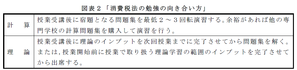 消費税法の例になりますが、合格した学生と私の受験勉強の経験を踏まえて、図表2の勉強の向き合い方で学習方法を検討してください。