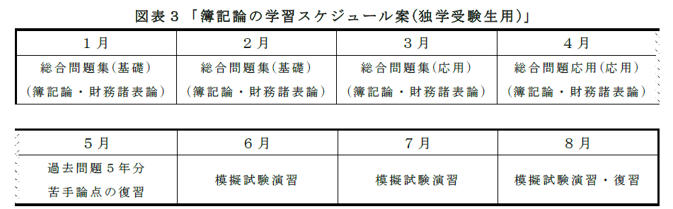 資料通信などを利用して独学を中心に財務諸表論を学習される方は、図表1の学習計画を参考に、自身の生活スケジュールに合わせて計画してください。