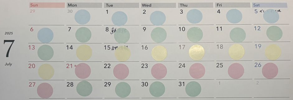 - 勉強したことの視覚化:実施した勉強はスケジュール表に記入し、目標の勉強時間を達成した日は、カレンダーにシールを貼り、毎日達成感を感じられる仕組みを作りました。