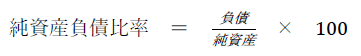 貸借対照表の負債を純資産で割った指標で、次のような式になります。
