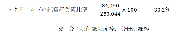 長期的な安全性を確認するためには、返済しなければならない負債が貸借対照表の中でどの程度あるかをみる必要があります。負債が分子に位置づけられていることから、この比率が低いほど安全性は高いとみなされます。