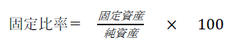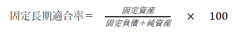 貸借対照表の固定資産を、固定負債と純資産の合計額で割った指標で、次のように計算されます。