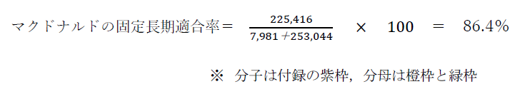 固定長期適合率の分母の固定負債は、いずれは返済しなければならないので、これを除いた比率を計算することにより、より厳しく長期の安全性を測定したのが固定比率です。