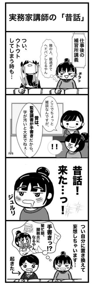 補習所で特に印象に残っているのは、現役バリバリ公認会計士による「昔話」です。