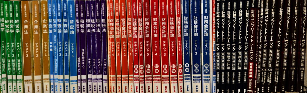具体的には復習レベルの問題集(CPA 会計学院の教材では「個別問題集」)から、本試験レベルの過去問題集等(CPA 会計学院の教材では「短答対策問題集/論⽂対策集」)の順番で演習を進めていました。